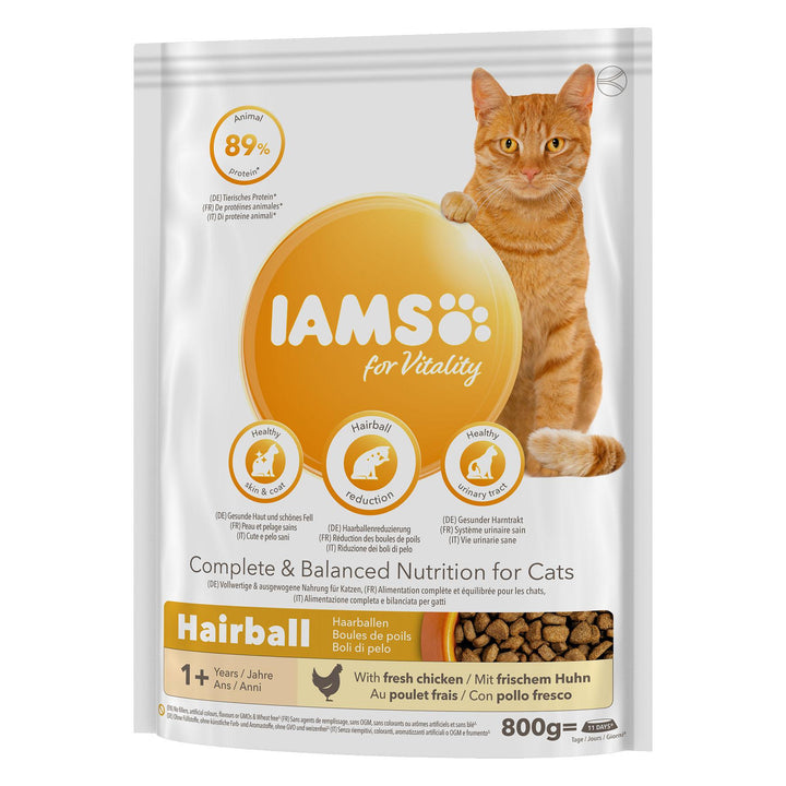IAMS for Vitality Anti-Hairball est un aliment premium 100% complet et équilibré pour chats adultes et seniors. Nos formules nouvelles et améliorées sont basées sur des protéines animales de haute qualité qui ont été soigneusement sélectionnées pour soutenir les sept signes de vitalité saine de votre ami à quatre pattes.